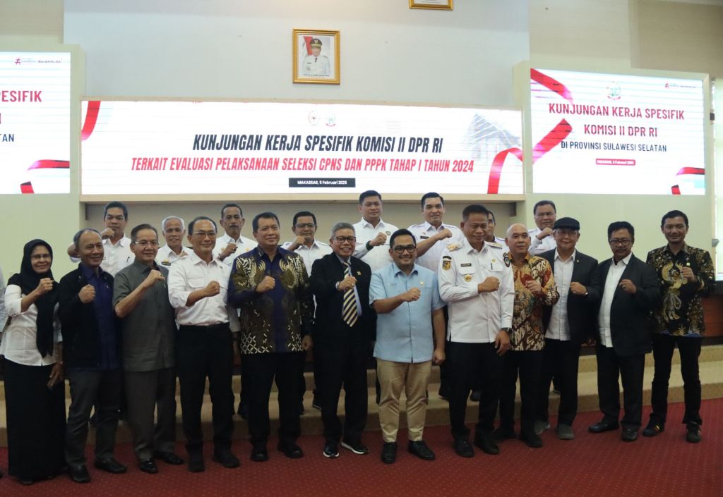Kegiatan yang berlangsung di Ruang Rapat Pimpinan Gedung A Kantor Gubernur Sulawesi Selatan dihadiri Wakil Menteri Menpan RB, Ketua komisi II DPR RI bersama anggota, Para Walikota/Bupati se-Sulsel, para Kepala BKPSDM Kota/Kab Se-Sulsel dan Kepala OPD Sulsel, Rabu 5 Februari 2025.