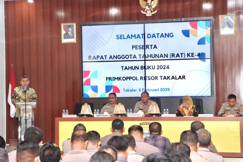 Takalar, Sulawesi Selatan / linsrikandi24.com – Primkomppol Resor Takalar menggelar Rapat Anggota Tahunan (RAT) Ke-47 Tahun Buku 2024 pada Kamis (6/2) bertempat di Aula Wicaksana Laghawa Polres Takalar. Acara yang dimulai pukul 09.00 WITA ini dipimpin langsung oleh Kapolres Takalar, AKBP Gotam Hidayat, S.I.K., M.Si., dan dihadiri oleh sejumlah pejabat serta anggota koperasi.