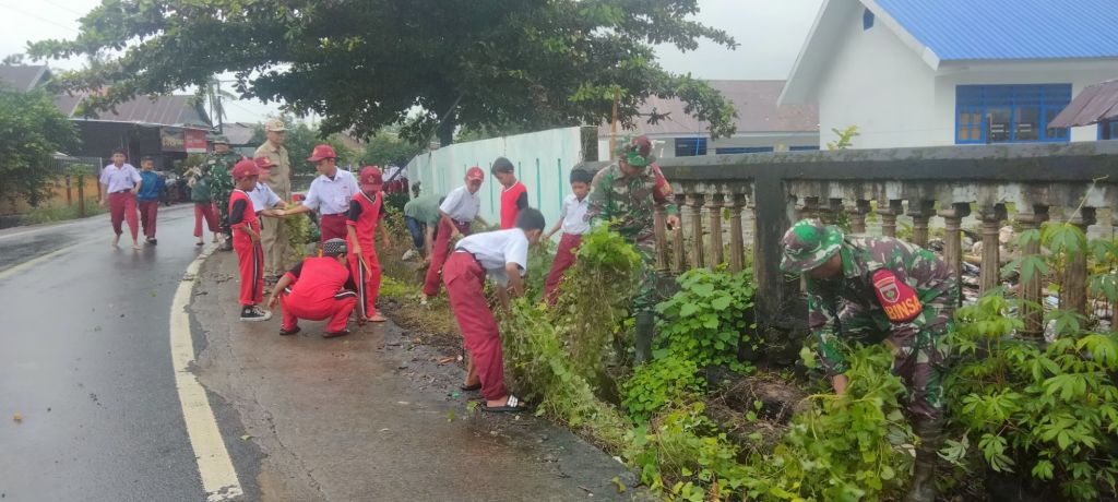 TAKALAR / linsrikandi24..com – Personel Koramil 1426-01/Polut Kodim 1426/Takalar, mengajak Siswa Siswi SD Negeri No 127 Ko’mara melaksanakan kegiatan kerja bakti bersihkan selokan dan bahu jalan yang banyak ditumbuhi rumput liar di Desa Ko’mara, Kecamatan Polongbangkeng Utara Kabupaten Takalar. Selasa, 11/02/2025.