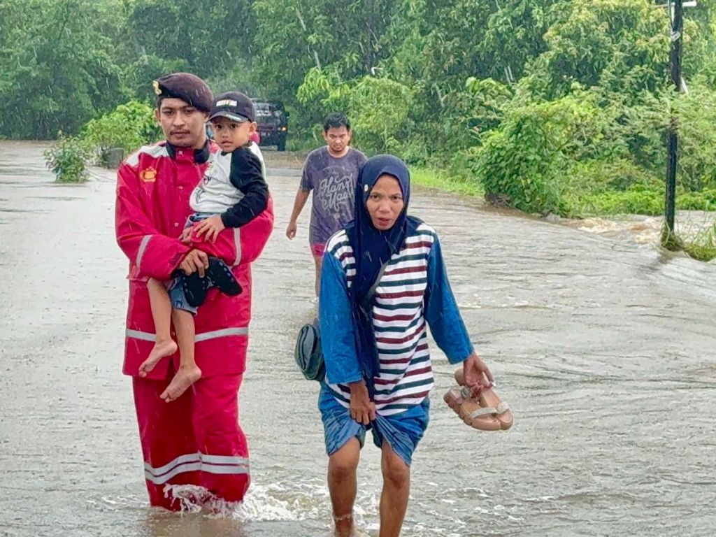 Dengan penuh kepedulian, mereka tidak hanya memantau kondisi wilayah terdampak, tetapi juga langsung membantu warga yang kesulitan akibat banjir.