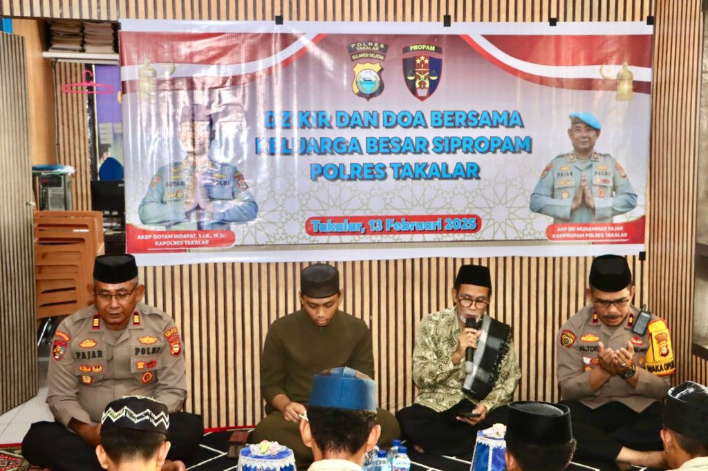 Takalar, Sulawesi Selatan – Keluarga besar Seksi Propam (Sie Propam) Polres Takalar menggelar kegiatan dzikir dan doa bersama di Aula Siepropam Polres Takalar, Kamis (13/2) siang.