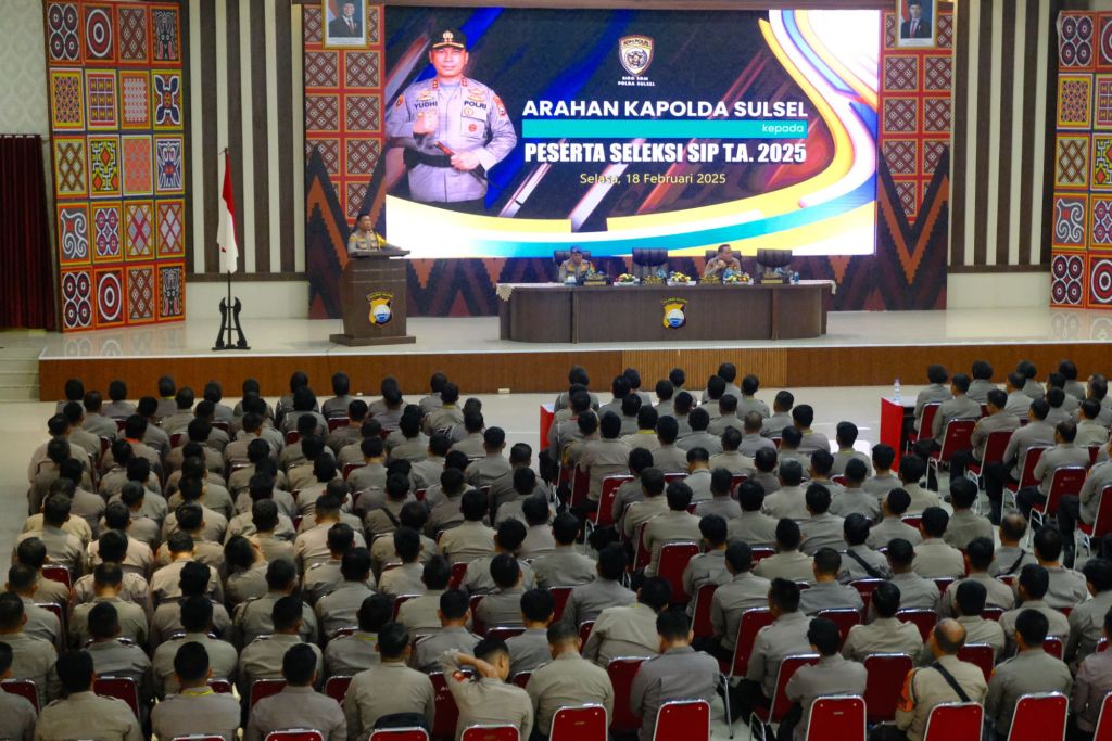 Dalam arahannya, Kapolda Sulsel mengapresiasi seluruh peserta yang telah mencapai tahapan seleksi akhir. Ia menegaskan bahwa proses seleksi SIP dilakukan dengan ketat dan tetap berpedoman pada prinsip BETAH, yaitu Bersih, Transparan, Akuntabel, dan Humanis. Setiap tahapan seleksi diawasi secara ketat oleh pengawas internal maupun eksternal guna memastikan integritas dan profesionalisme dalam rekrutmen calon perwira pertama Polri.