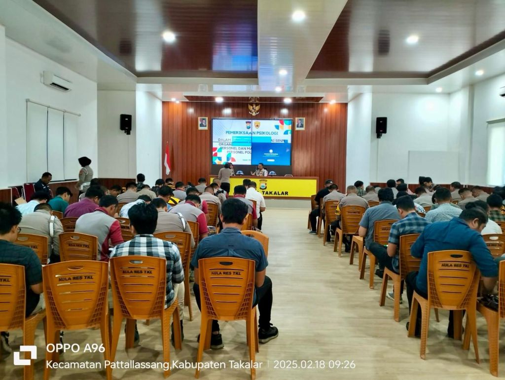 Takalar, Sulawesi Selatan / linsrikandi24.com – Polres Takalar melaksanakan Tes Psikologi dalam rangka pinjam pakai senjata api (senpi) organik Polri, tes psikologi berkala personel, serta mapping psikologi personel pada Selasa, 18 Februari 2025.