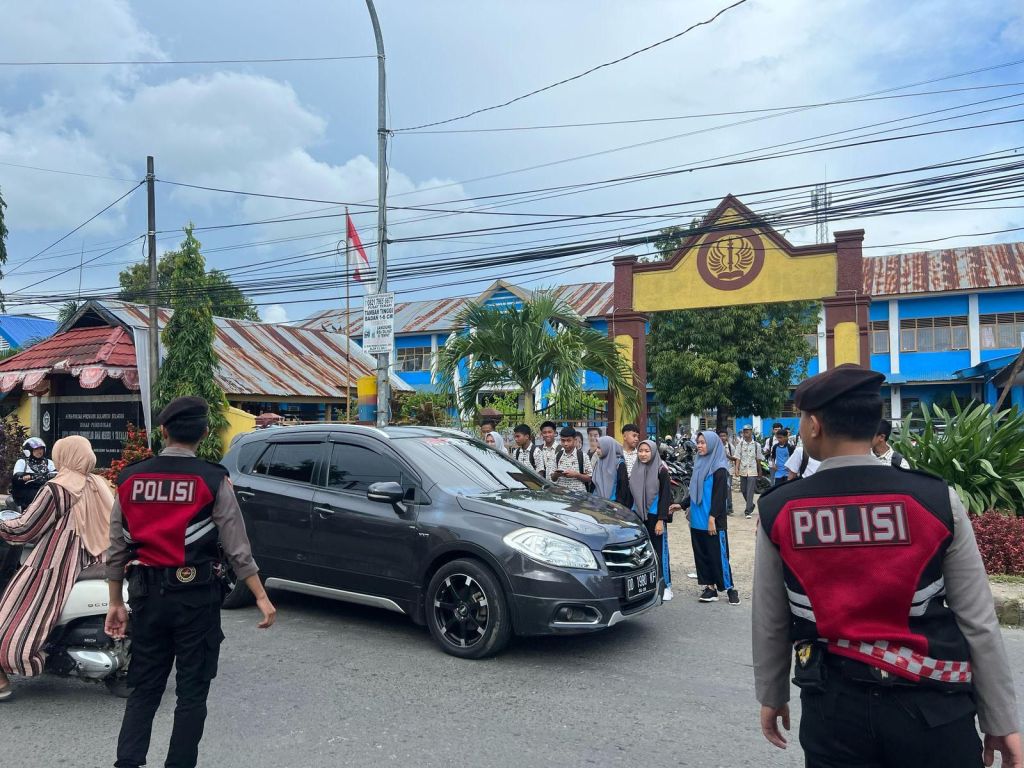 Takalar, Sulawesi Selatan / linsrikandi24.com – Untuk menjaga keamanan dan ketertiban masyarakat, khususnya di lingkungan sekolah, Anggota Perintis Presisi Regu 3 Sat Samapta Polres Takalar melaksanakan patroli dan pengaturan lalu lintas di depan SMA Negeri 3 dan SMA Negeri 1 Kabupaten Takalar pada Rabu (19/2) pukul 15.30 WITA.