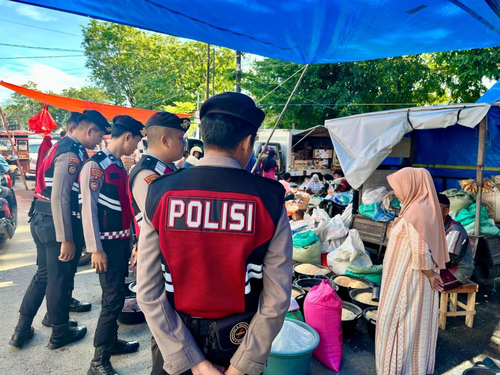 Mereka berdialog langsung dengan para pedagang dan pengunjung pasar, memberikan pesan-pesan kamtibmas, serta mengajak masyarakat untuk selalu waspada terhadap potensi gangguan keamanan, termasuk tindak kriminalitas dan gangguan ketertiban umum.