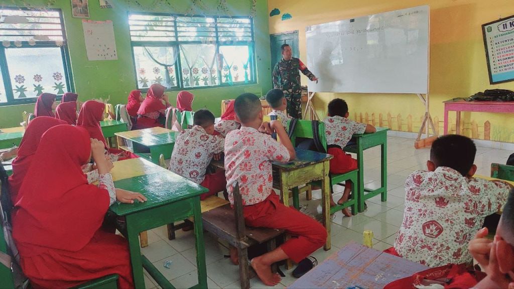 Kegiatan tersebut merupakan implementasi program Babinsa Masuk Sekolah SD, dengan memantapkan materi Wawasan Kebangsaan, sebagai bentuk memupuk jiwa nasionalisme di lingkungan sekolah.