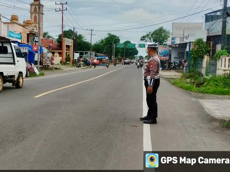 Dalam kegiatan ini, personel Sat Lantas memantau situasi arus lalu lintas serta melakukan pengawasan dan pengaturan di titik-titik ramai guna memastikan kelancaran perjalanan masyarakat.