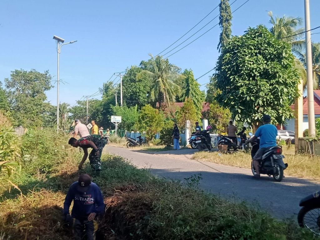 Personel Koramil mengajak warga untuk aktif dan menjadi motivator penggerak masyarakat untuk gotong royong peduli terhadap kebersihan lingkungan. Kegiatan kerja bakti tersebut fokus pada pembersihan saluran air yang telah tumbuh rumput liar dan banyak sampah yang mengotori saluran air.