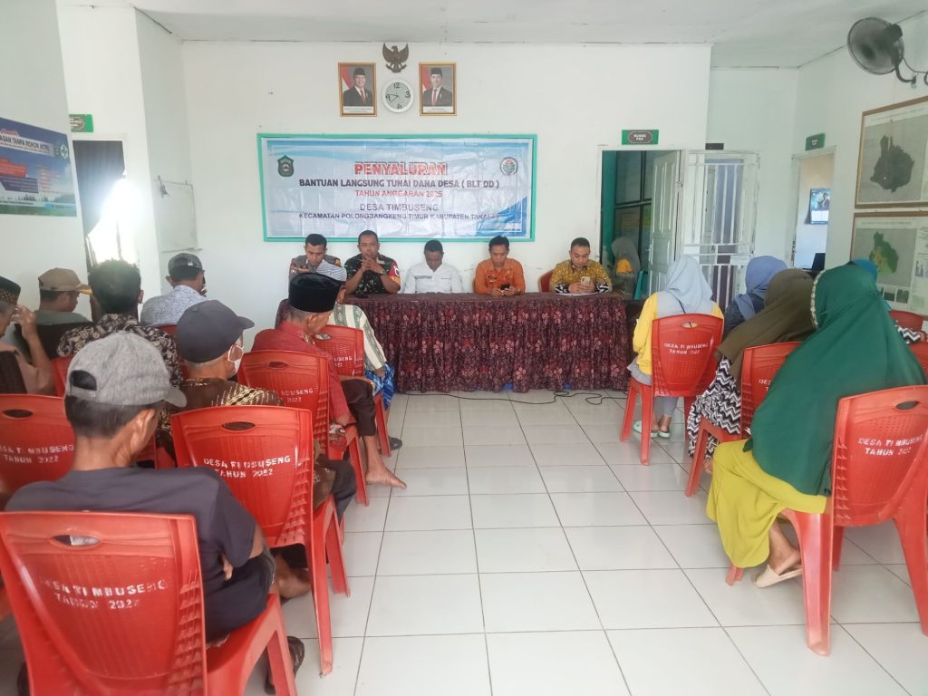 TAKALAR / linsrikandi24.com – Babinsa Koramil 1426-01/Polut Kodim 1426/Takalar Sertu Mulyadi menghadiri sekaligus lakukan pendampingan dan pengawalan kegiatan penyaluran Bantuan Langsung Tunai Dana Desa (BLT DD) tahap I tahun 2025 untuk masyarakat kurang mampu bertempat di Kantor Desa Timbuseng Kecamatan Polongbangkeng Timur Kabupaten Takalar. Kamis (06/03/2025)