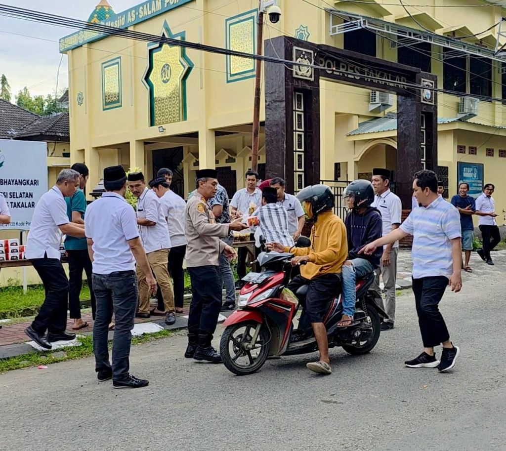 Dalam aksi sosial tersebut, AKBP Gotam Hidayat didampingi langsung oleh Kasat Intelkam AKP H. Hasrulluh, S.H., M.H., serta sejumlah pejabat dan personil Sat Intelkam Polres Takalar. Mereka membagikan takjil kepada pengendara dan pejalan kaki yang melintas di sekitar lokasi.
