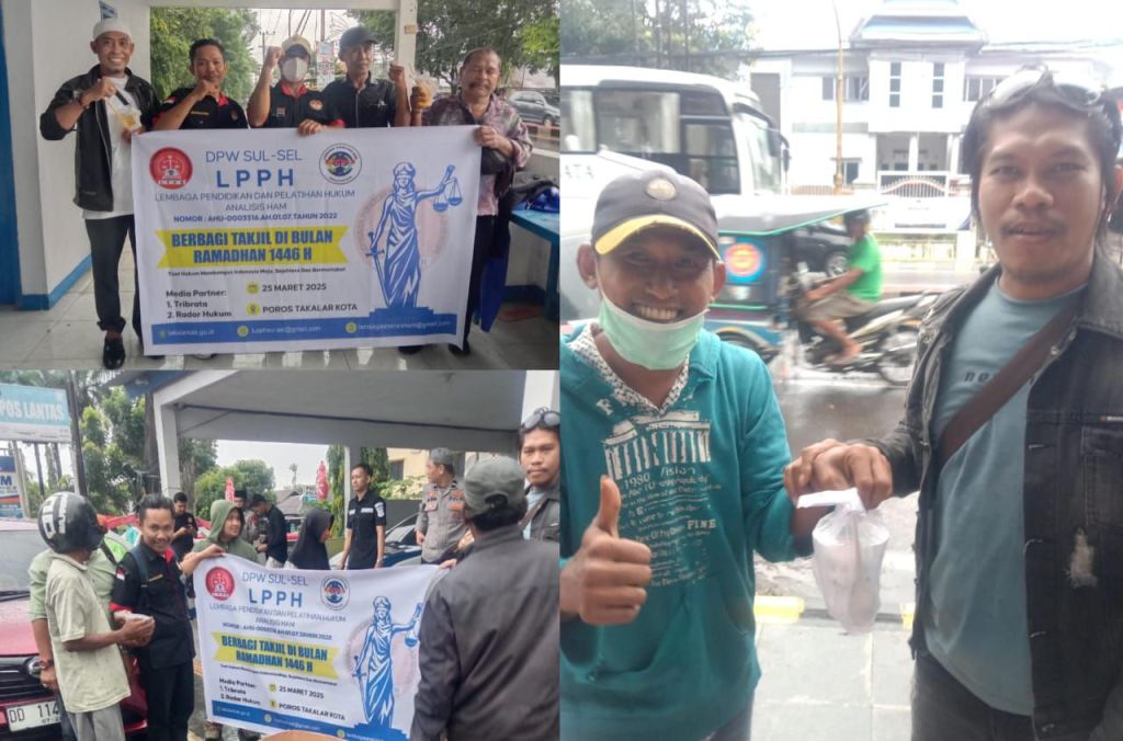 Takalar / linsrikandi24.com – Semangat berbagi dan kepedulian mewarnai jalanan Poros Takalar Kota pada sore hari yang cerah. Dewan Pimpinan Wilayah (DPW) Sulawesi Selatan Lembaga Pendidikan dan Pelatihan Hukum Analisis HAM (LPPH) menggelar aksi bagi takjil yang penuh makna, sebagai bagian dari tradisi tahunan menyambut bulan suci Ramadhan 1446 H. 25 Maret 2025