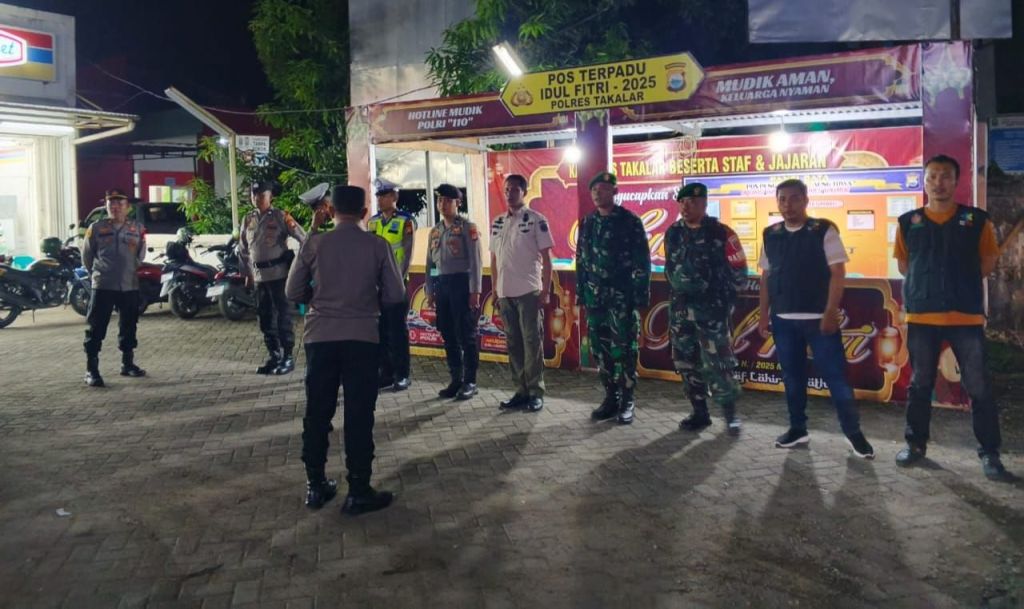 TAKALAR / linsrikandi 24.com – Personel TNI dari Kodim 1426/Takalar bersama Polres Takalar dan instansi terkait, laksanakan pengamanan arus mudik lebaran Idul Fitri 1446/H tahun 2025 di Pos terpadu Operasi Ketupat 2025 Jalan Jenderal Sudirman Kelurahan Pattallassang Kecamatan Pattallassang dan Pos terpadu Desa Aeng Towa Kecamatan Galesong Utara Kabupaten Takalar. Rabu, 26/03/2025 malam.