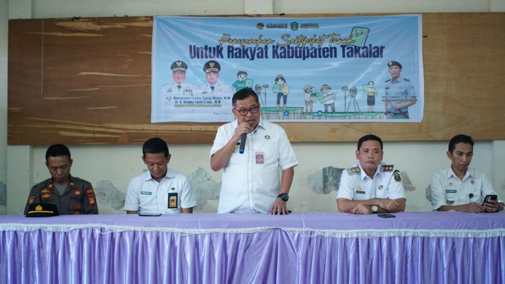 Takalar/ linsrikandi24.com – Bupati Takalar Ir. H. Mohammad Firdaus Daeng Manye,.MM bersama Wakil Bupati Takalar Dr. H. Hengky Yasin,.S.Sos .MM menyerahkan secara simbolis Sertifikat Tanah untuk rakyat Kab. Takalar di Aula Kantor Camat Polongbangkeng Utara Kab. Takalar, Rabu 26 Maret 2025.