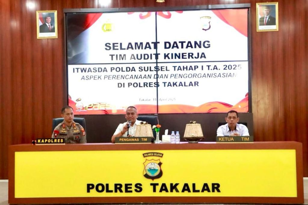 Takalar / linsrikandi24.com – Polres Takalar menerima kunjungan Tim Audit Kinerja Itwasda Polda Sulsel dalam rangka pelaksanaan Audit Kinerja Tahap I Tahun 2025 yang berfokus pada aspek perencanaan dan pengorganisasian. Kegiatan ini berlangsung di Aula Wicaksana Laghawa Mapolres Takalar pada Selasa pagi sekitar pukul 09.00 WITA 15 April 2025