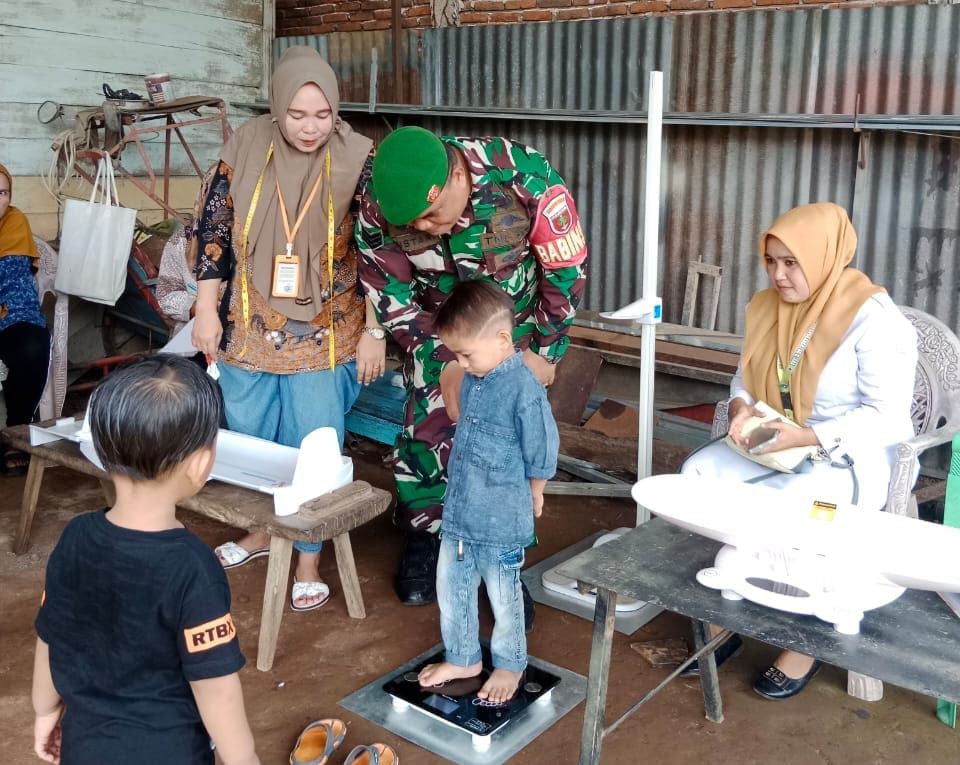 TAKALAR / linsrikandi24.com – Guna menekan bertambahnya angka Stunting Balita yang disebabkan oleh kurangnya asupan gizi, Babinsa Koramil 1426-01/Polut Kodim 1426/Takalar Serka Mustari melaksanakan kegiatan pendampingan penimbangan berat badan dan pengukuran tinggi badan Balita bertempat di Posyandu Kelurahan Palleko, Kecamatan Polongbangkeng Utara Kabupaten Takalar. Selasa, (22/04/2025).