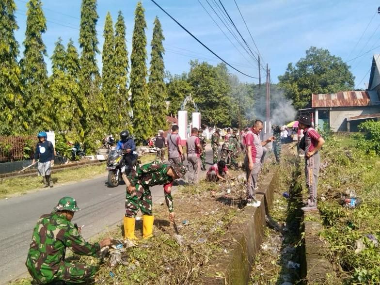 Adapun sasaran pembersihan meliputi tumpukan sampah yang berada di pinggir jalan, baik di dalam maupun di luar saluran air (got), serta pembersihan semak belukar yang mengganggu di sepanjang jalan poros tersebut.