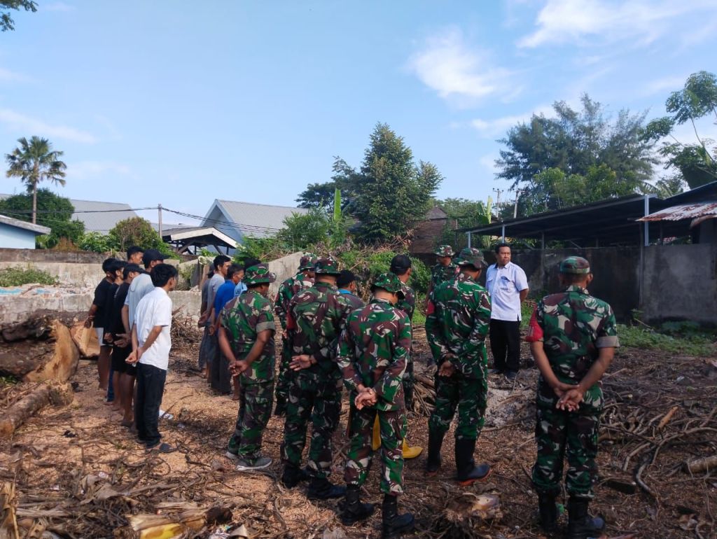 Dalam kegiatan ini, Personel Koramil bersama warga nampak semangat melakukan pekerjaan pembersihan lokasi pembangunan masjid dengan menebang pohon meratakan sisa bangunan dan meratakan tanah.