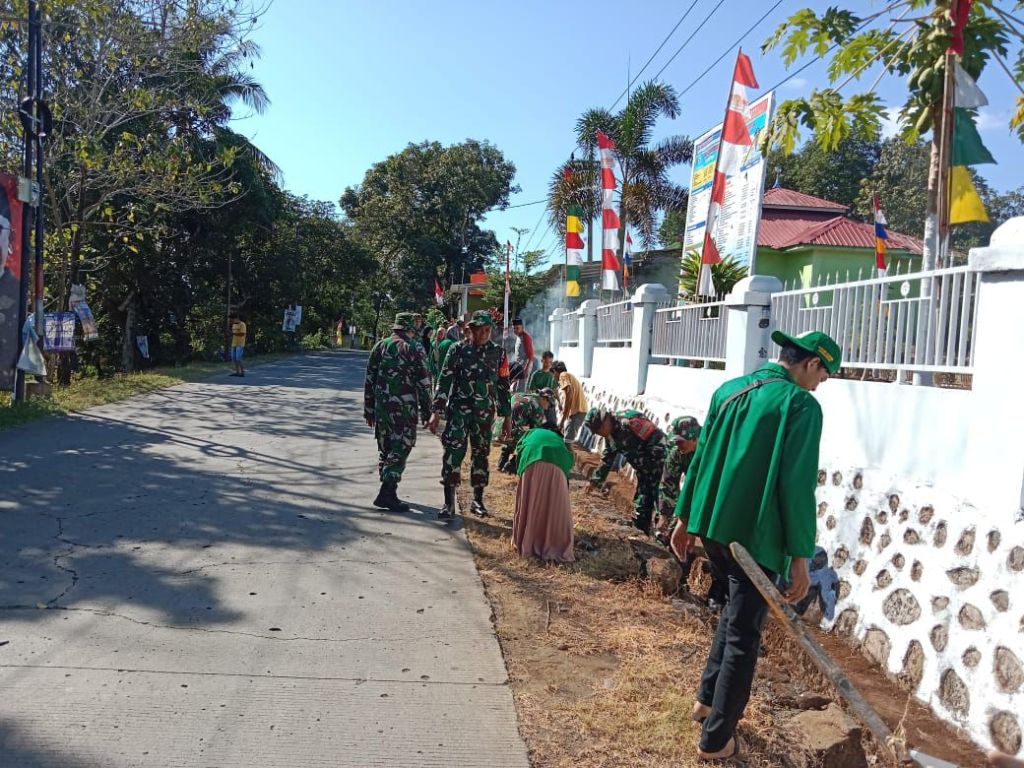 Dalam pelaksanaan kegiatan kerja bakti tersebut dipimpin oleh Peltu Jalaluddin Bati Tuud Koramil 1426-01/Polut yang turut melibatkan Mahasiswa KKN UIN Alauddin Makassar dan komponen masyarakat.