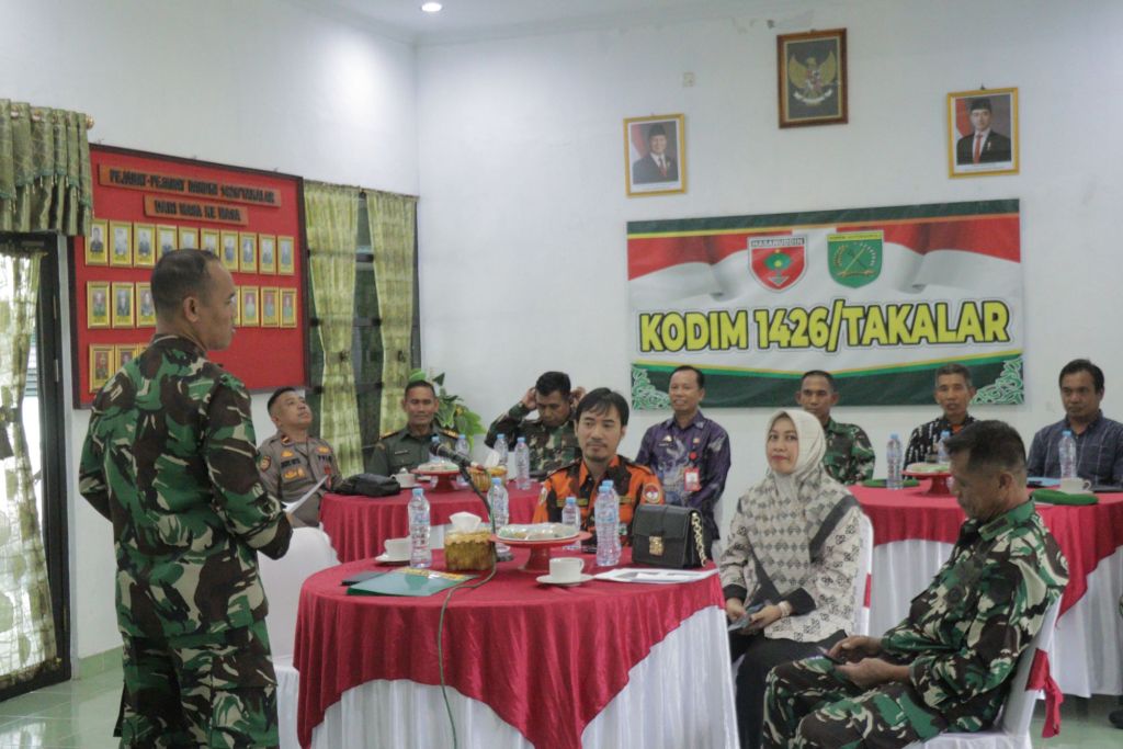 Rapat koordinasi dan pemaparan rencana kegiatan lomba Kampung Pancasila yang dipaparkan oleh Kapten Inf Muh Nur Pasi Ter Kodim 1426/Takalar dilaksanakan di Ruang Data Makodim 1426/Takalar Jalan Fitrah Nomor 9 Kelurahan Kalabbirang Kecamatan Pattallassang Kabupaten Takalar. Kamis, 15/05/2025.