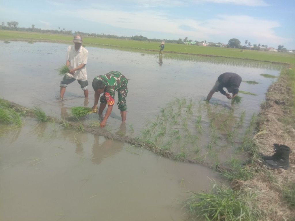 Serka Bustan menyampaikan bahwa membantu petani tanam padi adalah wujud nyata peran Babinsa dalam mensukseskan swasembada pangan wilayah. Memotivasi para petani agar hasil panen pun bisa lebih maksimal, “ungkapnya.