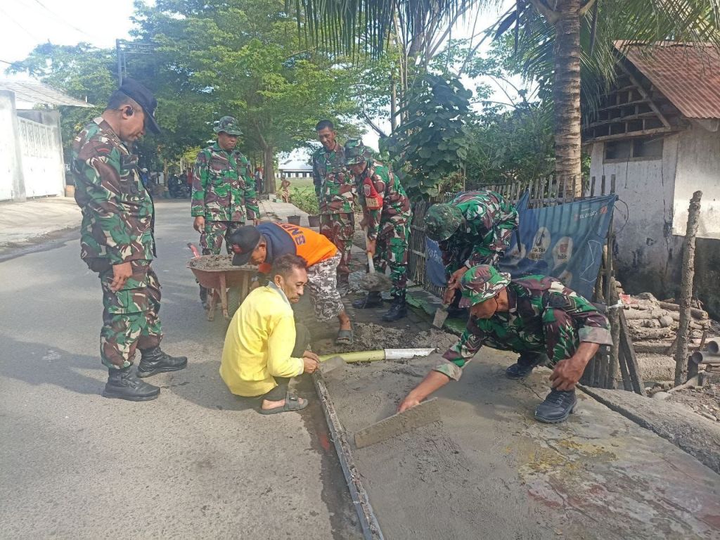 TAKALAR / linsrikandi24.com — Wujudkan kemanunggalan TNI dengan rakyat, Personel Koramil 1426-03/Galut, Kodim 1426/Takalar bersama pemerintah Desa dan warga melaksanakan kegiatan kerja bakti pengecoran trotoar serta bersihkan pinggir jalan di Desa Aeng Batu-batu Kecamatan Galesong Utara Kabupaten Takalar, Minggu 18/05/2025.