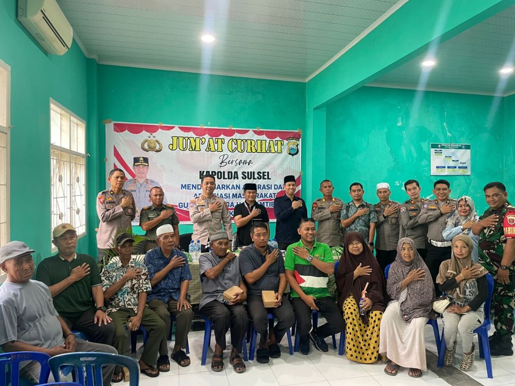 Kegiatan ‘Jumat Curhat’ yang dipimpin oleh Wadirbinmas Polda Sulsel, AKBP Andi Kumara, SIK., S.H., M.Si ini bertujuan untuk mendengarkan keluhan, saran serta kritik dan masukan dari masyarakat, yang tentunya bertujuan untuk membangun kinerja Polri yang lebih baik.