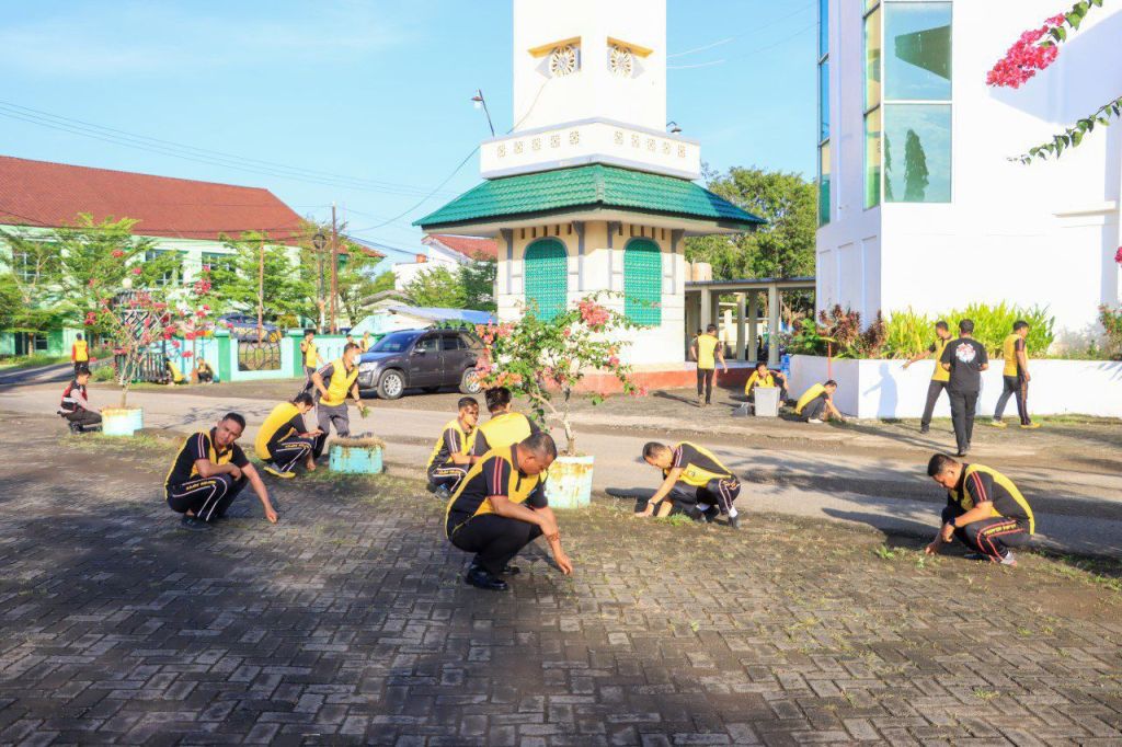 Seluruh anggota turun langsung ke lapangan membersihkan rumah-rumah ibadah di masing-masing kecamatan, sebagai bentuk sinergi Polri dengan masyarakat.