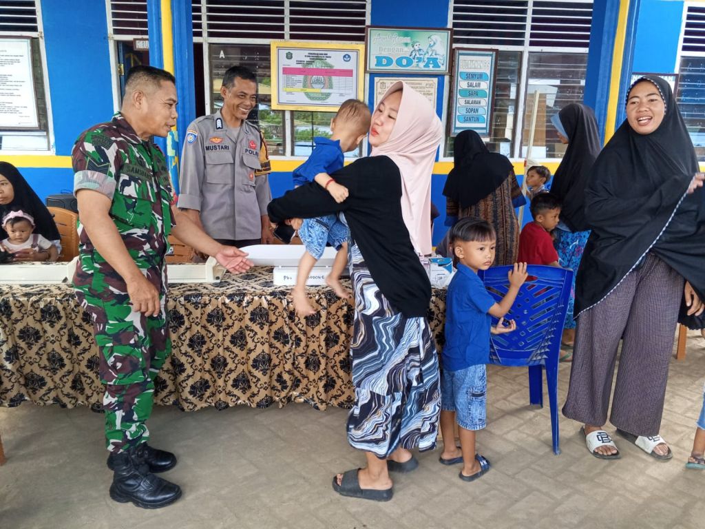 Takalar / linsrikandi24.com – Babinsa Koramil 1426-06/Mapsu Kodim 1426/Takalar Desa Tonasa Serka Samsuardi aktif melaksanakan pendampingan terhadap petugas Posyandu lakukan Penimbangan Balita dan pemeriksaan kesehatan pada anak Balita untuk mencegah terjadinya Stunting di wilayah Desa Tonasa, Kec. Sanrobone Kab. Takalar. Rabu, (18/06/2025).