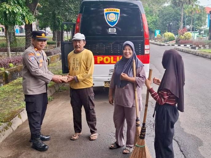 Kehadiran aparat kepolisian yang menyapa hangat dan memberikan sarapan secara langsung membuat suasana menjadi akrab dan penuh haru.