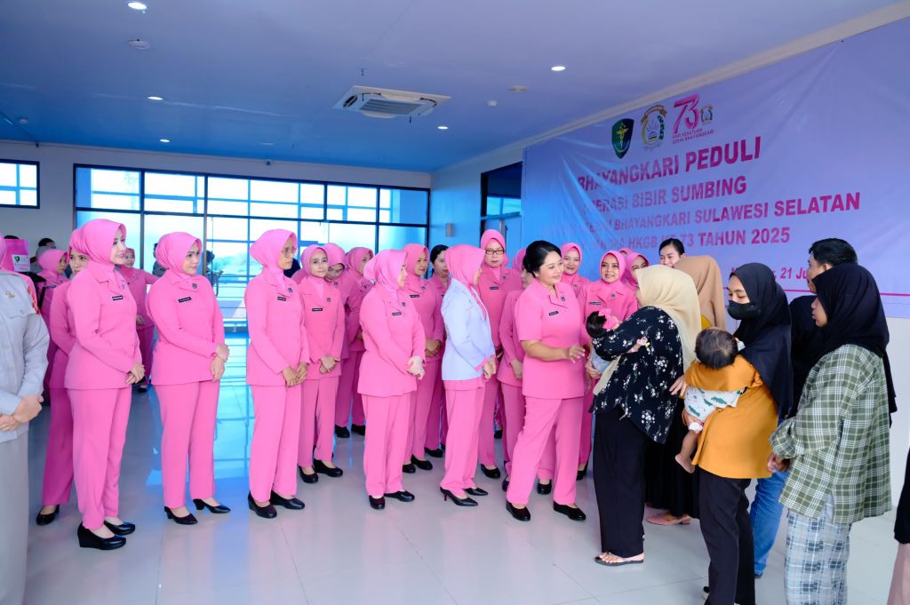 Makassar / linsrikandi24.com – Dalam rangka memperingati Hari Kesatuan Gerak Bhayangkari (HKGB) ke-73 tahun 2025, Bhayangkari Daerah Sulawesi Selatan menggelar kegiatan bakti kesehatan berupa operasi bibir sumbing. Kegiatan ini dilaksanakan selama dua hari, mulai tanggal 20 hingga 21 Juni 2025, bertempat di Rumah Sakit Bhayangkara Tingkat II Makassar.