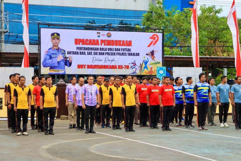 Pertandingan bola voli dan futsal ini menjadi salah satu rangkaian kegiatan yang digelar Polres Takalar dalam rangka memperingati HUT Bhayangkara ke-79, sebagai wujud kebersamaan sekaligus membangun jiwa sportif di kalangan anggota.