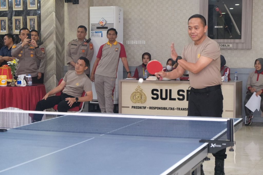 Makassar/ linsrikandi24.com — Dalam rangka memeriahkan Hari Ulang Tahun Bhayangkara ke-79, Polda Sulawesi Selatan menggelar Pertandingan Tenis Meja Antar Satuan Kerja (Satker) dan Pejabat Utama (PJU) di Lobby Lontang Adduppangeng, Lantai 1 Mapolda Sulsel, Selasa (24/06/2025).
