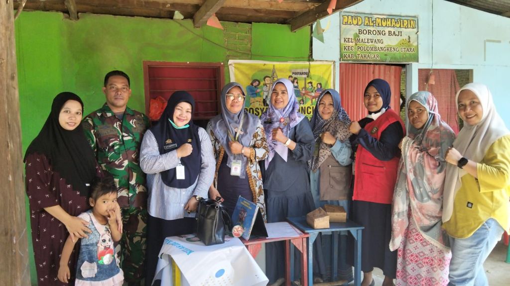 TAKALAR / linsrikandi24.com — Peran Babinsa Koramil 1426-01/Polut Kodim 1426/Takalar Kel. Malewang Sertu Abd Gaffar terus melaksanakan pendampingan terhadap petugas Posyandu lakukan penimbangan Balita dan pemeriksaan kesehatan untuk mencegah terjadinya Stunting di wilayah Kelurahan Malewang, Kecamatan Polongbangkeng Utara Kabupaten Takalar. Sabtu, (12/07/2025).