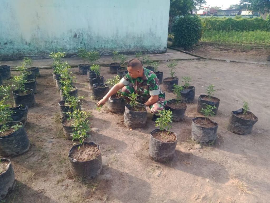 Seperti yang dilakukan oleh para personel Kodim dan Koramil Jajaran memanfaatkan lahan kosong dengan menanam sayur-mayur, seperti gambas bayam cabai terong dan sayuran lainnya.