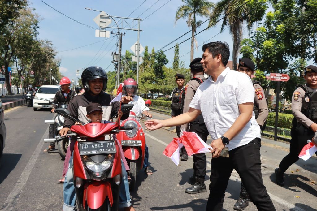 “Kami membagikan dan langsung memasangkan bendera Merah Putih berukuran kecil 15 x 10 cm kepada masyarakat, khususnya pengendara roda dua dan roda empat. Ini adalah langkah sederhana namun bermakna untuk mengingatkan kembali arti penting cinta tanah air,” ujarnya.