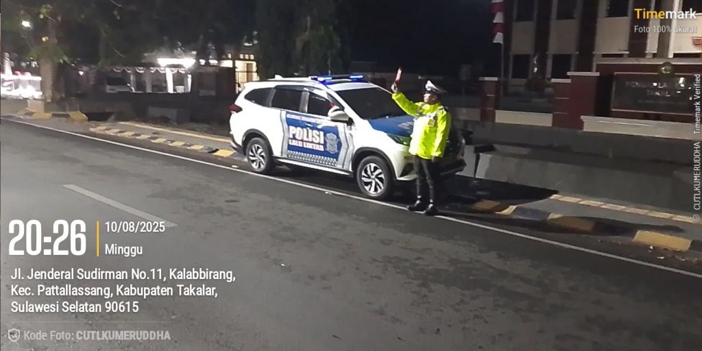 Takalar / linsrikandi24.com – Satuan Lalu Lintas (Sat Lantas) Polres Takalar melaksanakan patroli Blue Light pada malam hari di sejumlah titik rawan pelanggaran dan kecelakaan lalu lintas (laka lantas) di wilayah hukum Polres Takalar.11 Agustus 2025