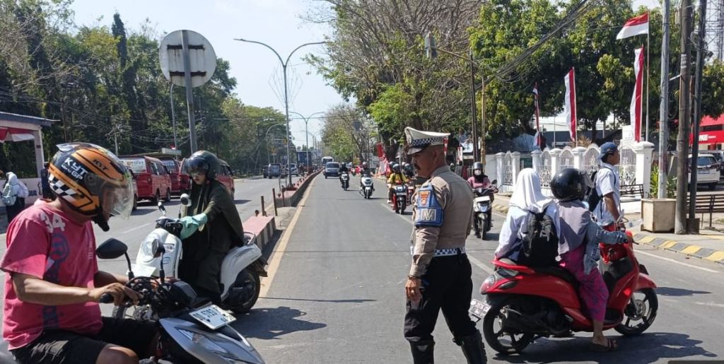 Takalar / linsrikandi24.com — Personel Satuan Lalu Lintas (Sat Lantas) Polres Takalar melaksanakan kegiatan pengaturan lalu lintas (gatur) pada jam pulang sekolah di Jalan Poros Kota Takalar, Selasa (12/8/2025). Kegiatan ini bertujuan memantau arus lalu lintas serta memberikan pengawasan dan pengaturan di lokasi-lokasi ramai, guna mencegah terjadinya kemacetan maupun potensi kecelakaan.12 Agustus 2025