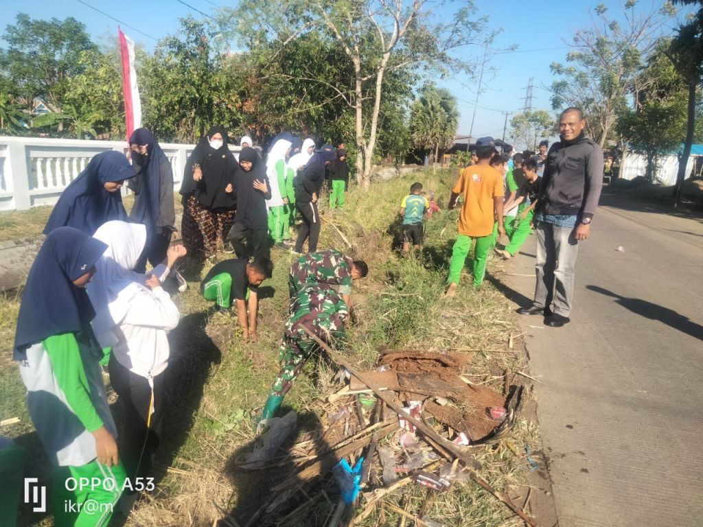 TAKALAR / linsrikandi24.com — Wujudkan kemanunggalan TNI dengan rakyat, Personel Koramil 1426-02/Polsel, Kodim 1426/Takalar bersama siswa dan guru SMP Negeri 3 Takalar melaksanakan Pembersihan saluran air sepanjang ± 150 meter serta sampah organik dan non organik di Kelurahan Bontokadatto Kecamatan Polsel Kabupaten Takalar. Minggu 07/09/2025.