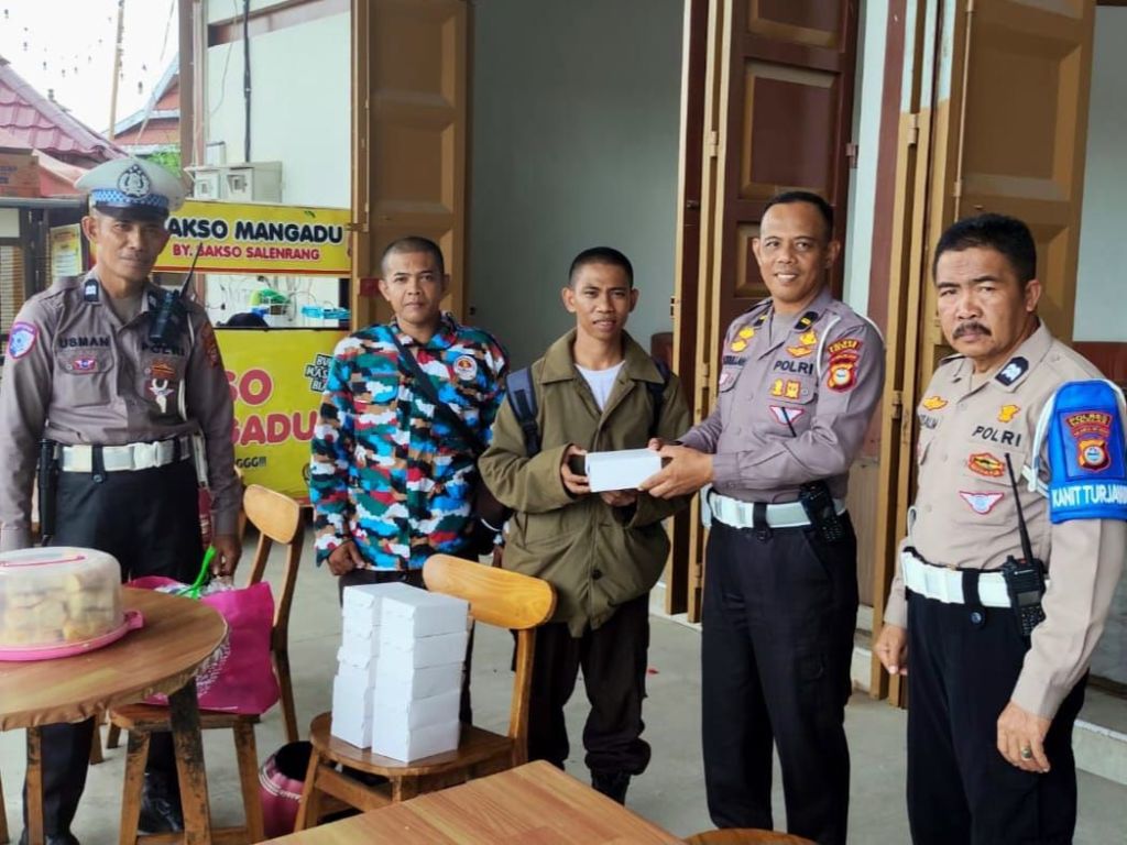 Selain edukasi, Satlantas Polres Takalar juga membagikan bingkisan kepada karyawan, masyarakat, serta para pengemudi ojek dan bentor sebagai bentuk kepedulian dan apresiasi atas peran mereka di jalan raya.
