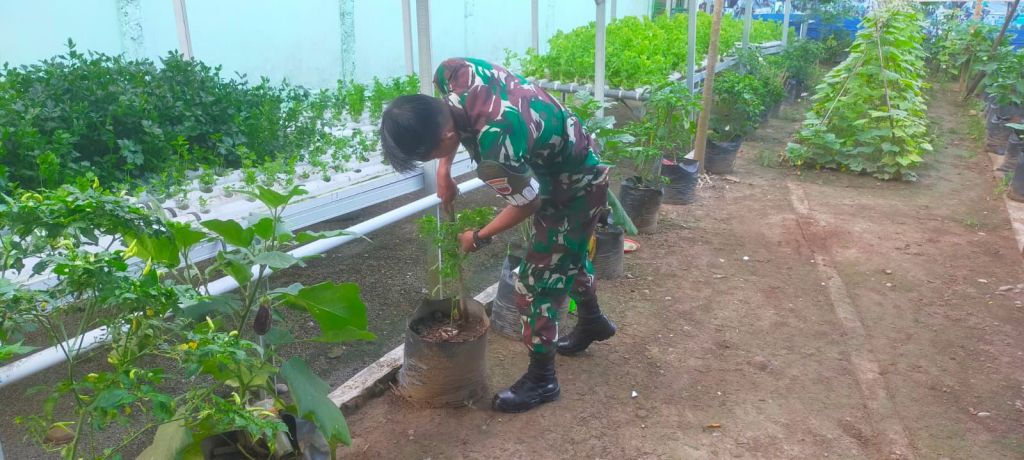 Seperti yang dilakukan oleh para personel Kodim dan Koramil Jajaran memanfaatkan lahan kosong dengan membuat kolam ikan, memelihara ayam petelur dan menanam sayur-mayur, seperti gambas bayam cabai terong dan sayuran lainnya.