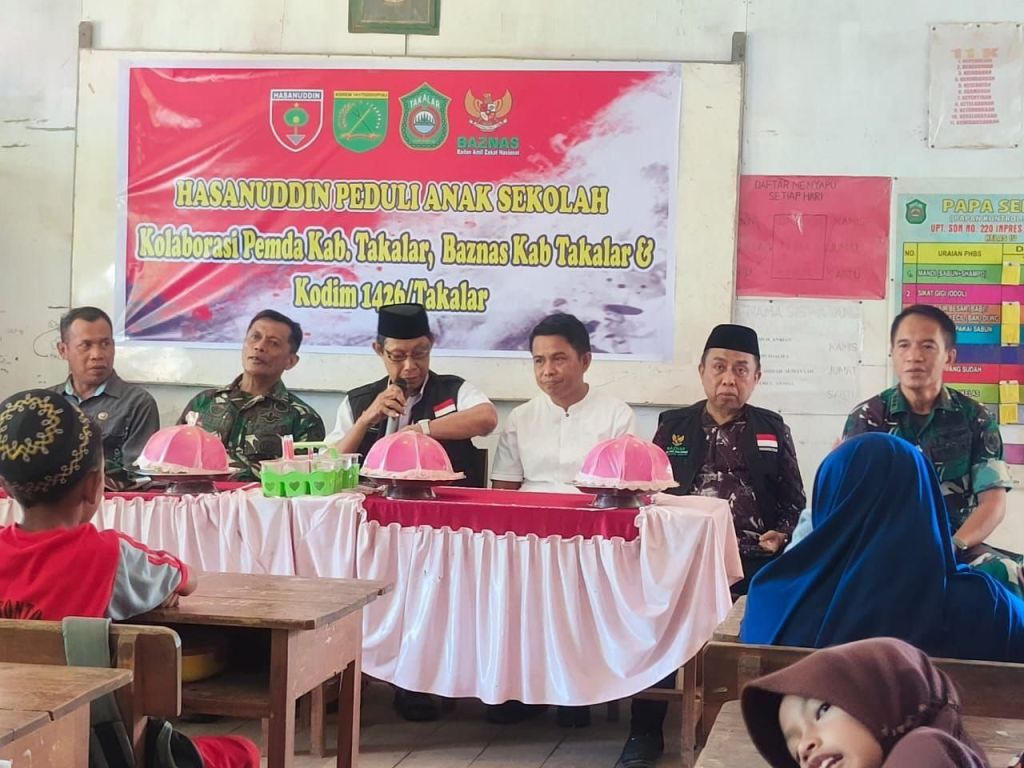 TAKALAR / linsrikandi24.com – Dalam rangka mendukung Program Hasanuddin Peduli Anak Sekolah, Kodim 1426/Takalar bekerjasama dengan Pemda Takalar menggelar kegiatan pemberian makanan bergizi gratis, dan alat tulis kepada siswa-siswi SD Negeri 220 Bontocinde Kelurahan Patte’ne Kecamatan Polongbangkeng Selatan Kabupaten Takalar. Jum’at (19/09/2025).