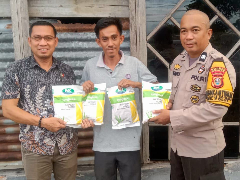 Bantuan yang diserahkan berupa bibit jagung merk SUMO sebanyak 13 kilogram atau 13 bungkus, yang akan digunakan untuk lahan perkebunan seluas kurang lebih satu hektar.