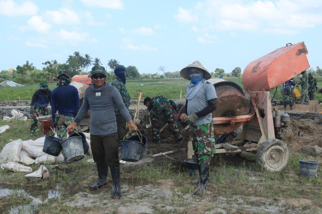 Banyak kegiatan yang akan dilaksanakan pada Program TMMD Reguler ke 126 ini, salah satunya yaitu pengecoran plat gorong-gorong. Hal ini terlihat beberapa satgas TMMD ke 126 Kodim 1426/Takalar beserta warga masyarakat sedang menjalankan mesin pengaduk adonan campuran (Molen).
