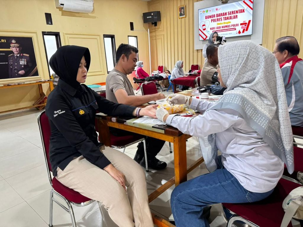 “Kegiatan donor darah ini kami laksanakan sebagai wujud kepedulian sosial serta kontribusi Polres Takalar dalam membantu sesama. Selain bermanfaat bagi penerima, donor darah juga berdampak positif bagi kesehatan pendonor, salah satunya melancarkan peredaran darah,” ungkap AKP Muh. Rizal.