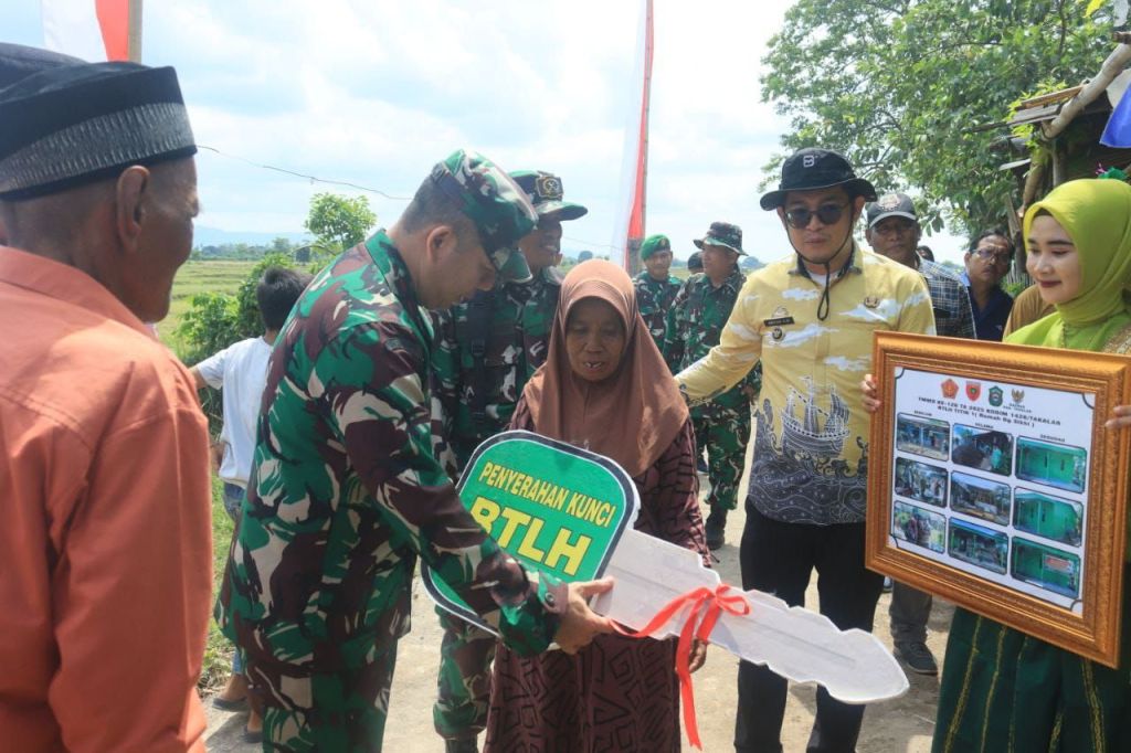 Penyerahan secara simbolis hasil bedah RTLH ditandai dengan pemotongan pita dan penyerahan kunci oleh Brigjen TNI Andre Clift Rumbayan, S.Sos, M.M (Danrem 141/Tp) didampingi Dansatgas Letkol Inf Faizal Amin, S.I.P, dan Dr. H. Hengky Yasin, S.Sos., M.M (Wakil Bupati Takalar) beserta segenap tamu undangan.
