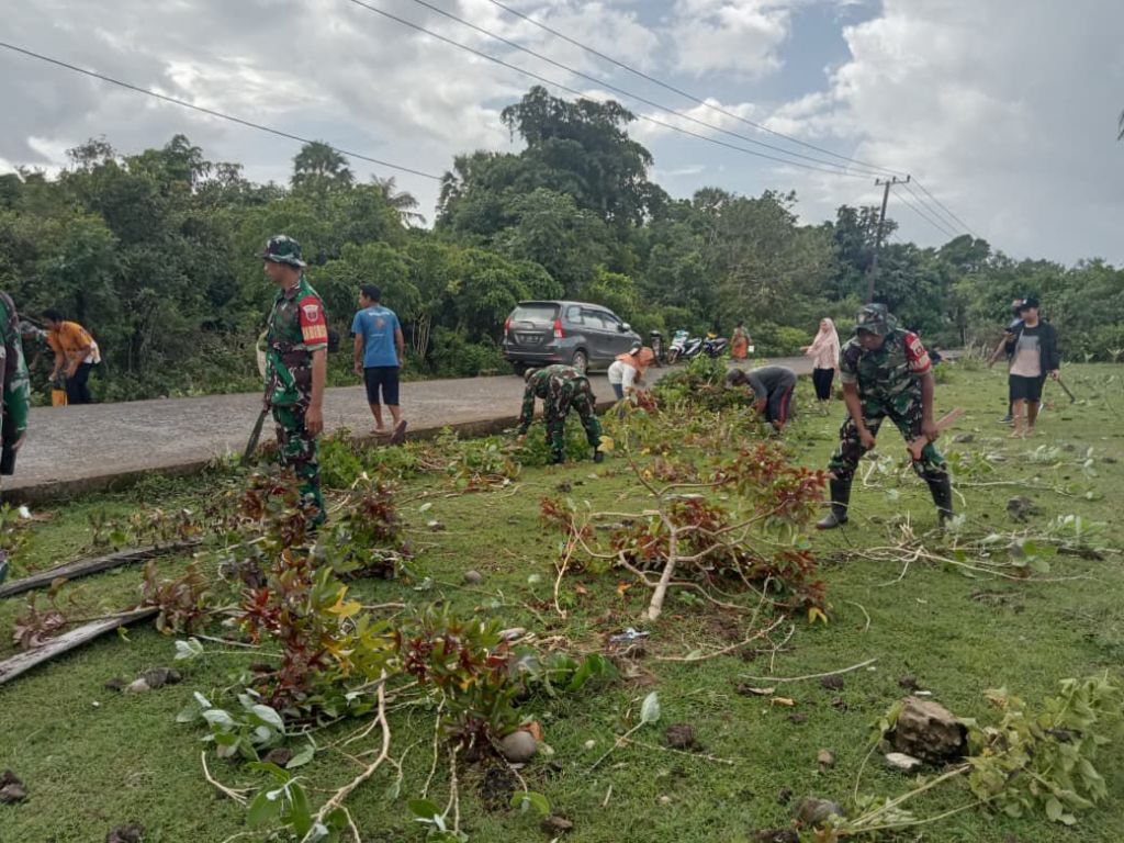 Kerja bakti dalam rangka memelihara kekompakan dan kemanunggalan TNI-Rakyat, begitu nampak terlihat dan benar-benar nyata dalam kegiatan di wilayah teritorial Koramil. Hal tersebut terbukti saat anggota Koramil dengan sepenuh hati membantu warga masyarakat melaksanakan kerja bakti membersihkan saluran air dan rumput liar di pinggir jalan.