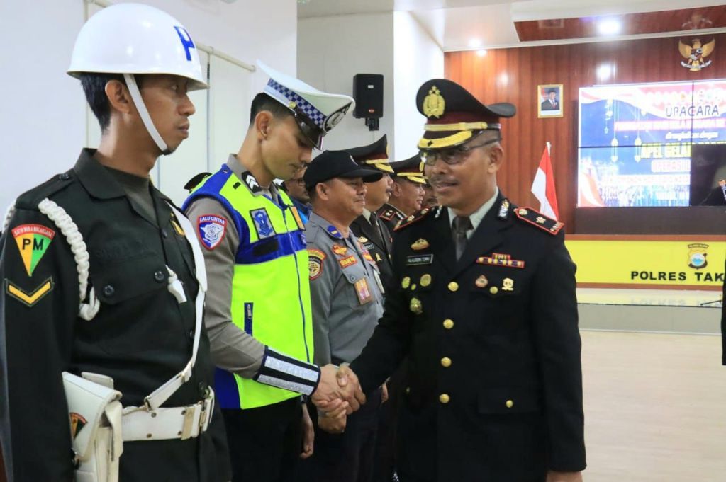 Upacara dan apel gelar pasukan dipimpin langsung oleh Wakapolres Takalar, KOMPOL Alauddin Torki, S.Sos., M.Si, selaku Pimpinan Apel. Bertindak sebagai Perwira Apel yakni IPTU Mulyadi, S.Sos., M.H (Kasat Lantas Polres Takalar), dan Komandan Apel IPDA Soesanto (Kanit Gakkum Sat Lantas Polres Takalar).