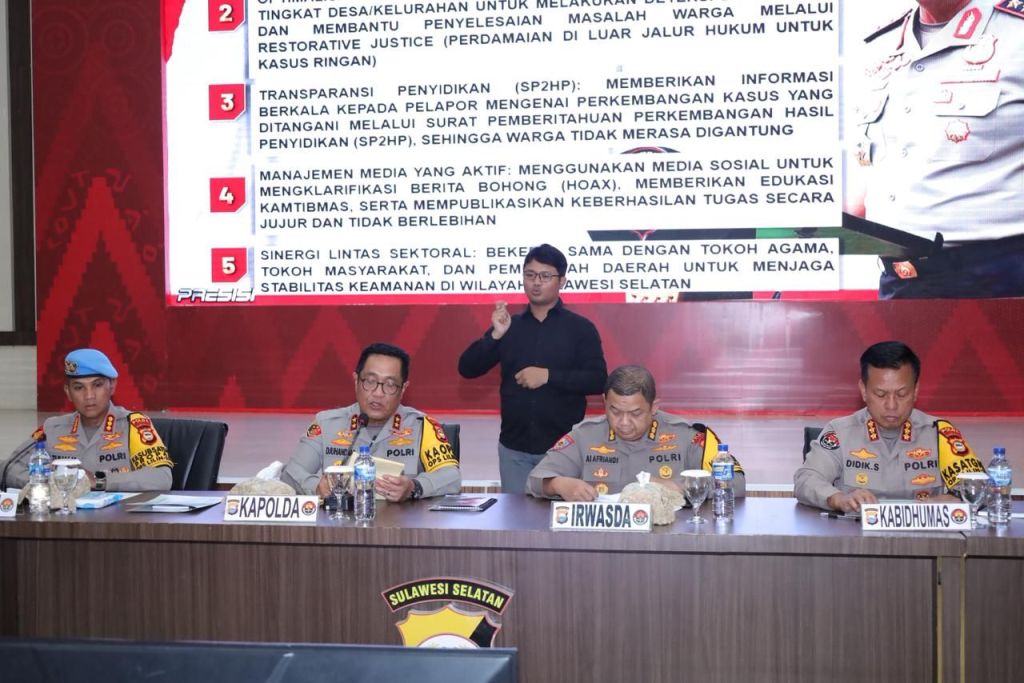 Menutup paparannya, Kapolda Sulsel menegaskan bahwa Polda Sulawesi Selatan telah berupaya maksimal dalam melaksanakan tugas pokok Polri, yakni memelihara kamtibmas, memberikan perlindungan, pengayoman, dan pelayanan kepada masyarakat, serta melakukan penegakan hukum secara objektif, transparan, dan akuntabel.