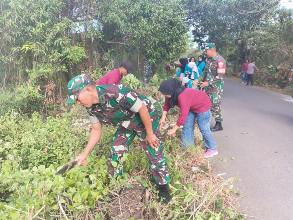 Kerja bakti dalam rangka memelihara kekompakan dan kemanunggalan TNI-Rakyat, begitu nampak terlihat dan benar-benar nyata dalam kegiatan di wilayah teritorial Koramil. Hal tersebut terbukti saat anggota Koramil dengan sepenuh hati membantu warga masyarakat melaksanakan kerja bakti membersihkan saluran air dan rumput liar di pinggir jalan.